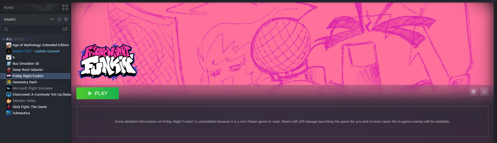 | Play: Since Steam Has A Add A Non Steam Game Function I Decided To Add Friday Night Funkin To My Steam Library Fridaynightfunkin |